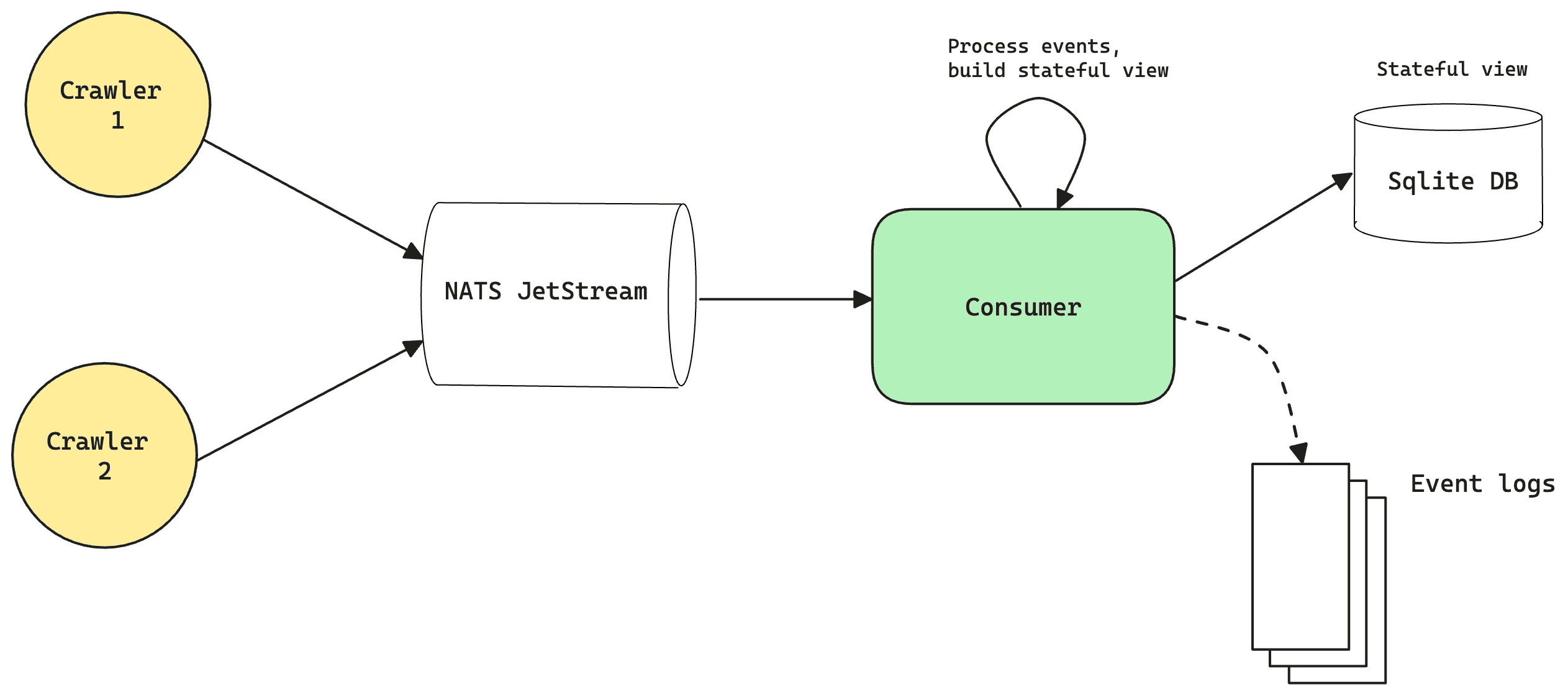 The crawler is the core component of the system. It will crawl the discv5 discovery DHT, find nodes that are on the correct network by looking at the metadata in their ENRs, and then try to connect with them. It will keep a local cache of known peers and try to reconnect every epoch to get updated observations.